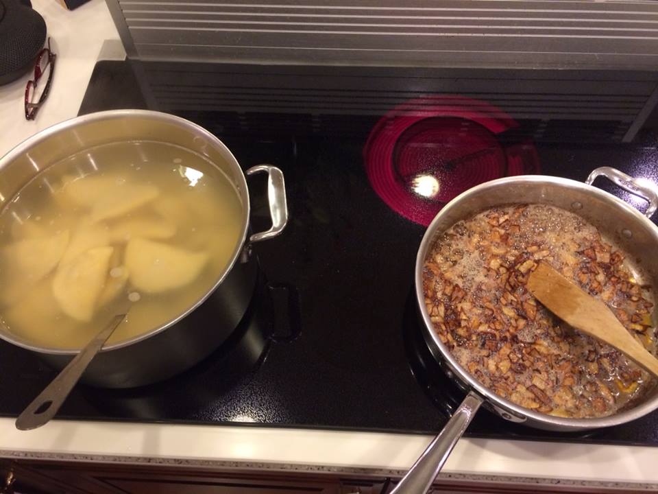But after that aberration, I was back to standing next to Grammy in her kitchen each Christmas and Easter, with my brother and cousins on “pinch patrol” to speed production. After she died, Dad and Mary Ann took over pierogi-making duties.